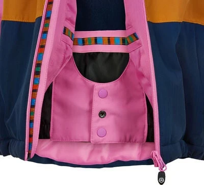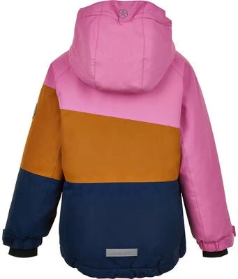 Skijakke laget av gjenvunnet materiale fra Color Kids. Jakken har tøystrikk i nederkanten, som holder snøen ute. Myke innermansjetter i lycra, og yttermansjetter som kan strammes med borrelås rundt håndleddene. Jakken har fleecefôr i hetten, rundt håndleddene, i nakken og på ryggen, slik at barnet ditt holder varmen i skibakken. Den lukkes med glidelås, som dessuten har en vanntett funksjon. På innsiden av jakken finnes en navnelapp med plass til heiskort. Også på jakkeermet finnes en lomme til heiskortet. Hetten er avtakbar og utstyrt med tøystrikk på framsiden, slik at den sitter ekstra godt rundt hodet. Jakken har i tillegg flere refleksdetaljer, slik at barnet syns godt i mørket. Den er behandlet med en økologisk overflatebehandling, som er helt fri for fluorkarboner.
