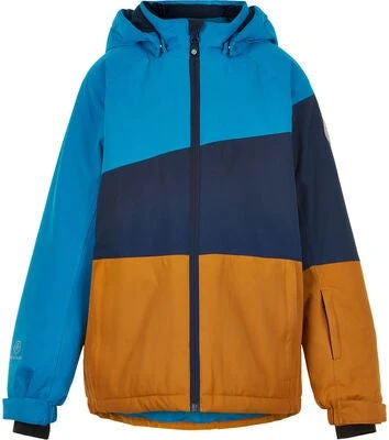 Skijakke laget av gjenvunnet materiale fra Color Kids. Jakken har tøystrikk i nederkanten, som holder snøen ute. Myke innermansjetter i lycra, og yttermansjetter som kan strammes med borrelås rundt håndleddene. Jakken har fleecefôr i hetten, rundt håndleddene, i nakken og på ryggen, slik at barnet ditt holder varmen i skibakken. Den lukkes med glidelås, som dessuten har en vanntett funksjon. På innsiden av jakken finnes en navnelapp med plass til heiskort. Også på jakkeermet finnes en lomme til heiskortet. Hetten er avtakbar og utstyrt med tøystrikk på framsiden, slik at den sitter ekstra godt rundt hodet. Jakken har i tillegg flere refleksdetaljer, slik at barnet syns godt i mørket. Den er behandlet med en økologisk overflatebehandling, som er helt fri for fluorkarboner.