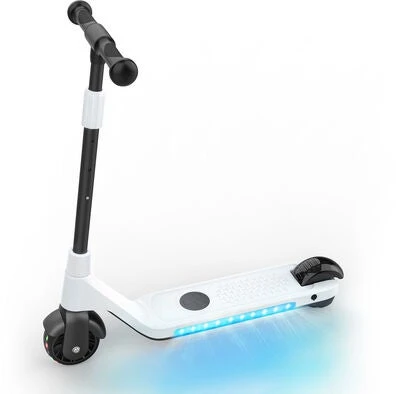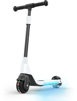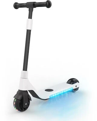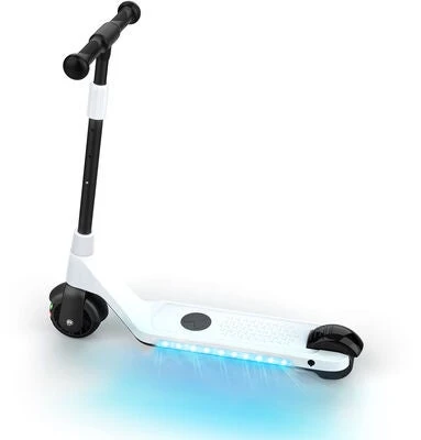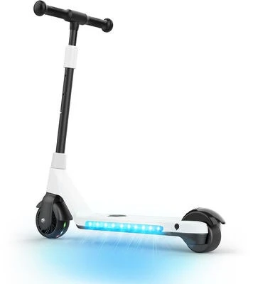 En elektrisk sparkesykkel for barn, fra Denver. Sparkesykkelen har en motor på 80W og fargerike LED-effekter. Når motoren settes i gang, har sparkesykkelen en makshastighet på 6 km/h.- Fargerik LED-belysning på forhjulet og dekkets underside- Gummihjul på 4,5 tommer (foran) og 3,5 tommer (bak)- Justerbart styre- Manuell fotbremse på bakhjulet- Maksimal rekkevidde 5–6 km (avhengig av barnets vekt)- Ladetid 1,5–2 timer- Se den lenkede PDF-filen nedenfor for detaljerte spesifikasjonerAnbefalt alder: fra 6 år.OBS! El-sparkesykkelen skal kun brukes under kontrollerte forhold.