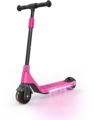 En elektrisk sparkesykkel for barn, fra Denver. Sparkesykkelen har en motor på 80W og fargerike LED-effekter. Når motoren settes i gang, har sparkesykkelen en makshastighet på 6 km/h.- Fargerik LED-belysning på forhjulet og dekkets underside- Gummihjul på 4,5 tommer (foran) og 3,5 tommer (bak)- Justerbart styre- Manuell fotbremse på bakhjulet- Maksimal rekkevidde 5–6 km (avhengig av barnets vekt)- Ladetid 1,5–2 timer- Se den lenkede PDF-filen nedenfor for detaljerte spesifikasjonerAnbefalt alder: fra 6 år.OBS! El-sparkesykkelen skal kun brukes under kontrollerte forhold.