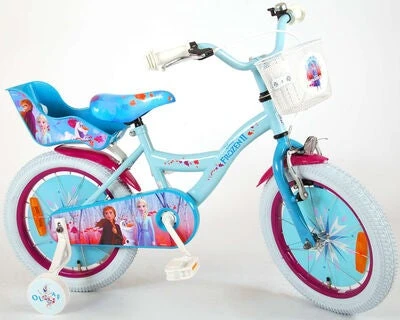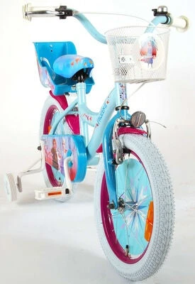 Barnesykkel fra Disney Frozen 2 med et populært motiv. Den har en hvit kurv og en sykkelklokke. Barnesykkelen har en praktisk sitteplass bak til leketøy, et justerbart sete og et frihjul. Perfekt for fartsfylte eventyr. – CE-merket. – 16 tommer. – Fotbrems og Steel V håndbremse. – Avtagbare støttehjul. – Rammehøyde: 25,4 cm. – Setehøyde fra bakken: 42-46 cm. – Anbefalt alder: fra 4 til 6 år. – 90 % stål, 10 % plast.