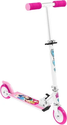 På denne fine sparkesykkelen med Prinsessemotiv fra Disney Princess kan barna rulle avgårde. Den sammenleggbare sparkesykkelen har justérbar høyde, ABEC 5-kulelager og antisklibelegg. Perfekt for alle disneyelskere!Anbefalt alder: 3-5 år.Maksimal belastning: 50 kg.Mål: 86 x 72 x 33 cm.Hjul: 120 mm.Materiale: stål, plast (PVC).Farge: hvit, rosa.