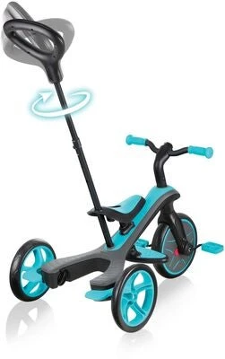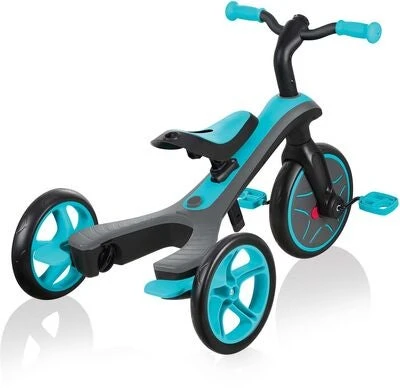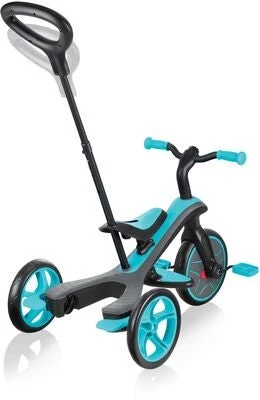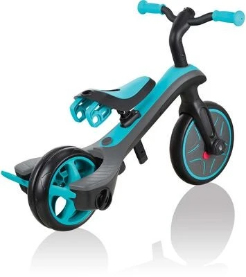 Sparkesykkelen Explorer Trike 4-i-1 fra Globber, er en morsom sparkesykkel, som enkelt forvandles fra trehjuling til sparkesykkel. Utrustet med sele for mindre barn, og et justerbart sete, slik at den er behagelig for små barn å sykle på. Den kan brukes på fire måter: som trehjuling for de yngste, trehjuling med ledestang, øvelses-trehjuling og sparkesykkel. Sykkelen kan lett anpasses uten verktøy mellom de ulike bruksområdene, og er veldig enkel å justere. Grunnet Globbers patenterte hjulmekanisme, kan de to bakhjulene settes sammen til ett bredt bakhjul, som passer bra når barnet har kommet litt lenger i sin balanseutvikling, og kan begynne å øve på sparkesykkel. En perfekt sykkel som vokser i takt med barnet, og hjelper til med utvikling av koordinasjon og balanse! Anbefalt alder: fra 15 måneder til ca. 5 år.