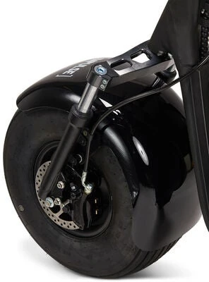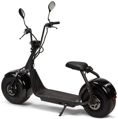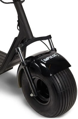 Stilren og praktisk eldrevet scooter Wolf fra Impulse. De brede dekkene og fotplaten gjør den stabil å kjøre. Scooteren har effektive skivebremser foran og bak, og to sidespeil som er montert på styret for bedre sikt bakover. På styret er det i tillegg et instrumentpanel som blant annet viser om belysningen er på samt batteriets energinivå. Scooteren har reflekser samt belysning foran og bak, noe som gir bedre sikt og gjør deg synlig for medtrafikanter. På siden av fotplaten er det en støtte som kan felles ut ved parkering. Motoren har en effekt på 1000 W, og er drevet med et 60V 12Ah Li-ion-batteri. – Maksimal hastighet: 45 km/h- Kjørelengde: ca. 45-65 kmAnbefalt alder: Fra 18 år.OBS! Scooteren skal kun brukes under kontrollerte forhold. OBS! Modellen har en høyere makshastighet, og skal normalt kun brukes på et inngjerdet område!
