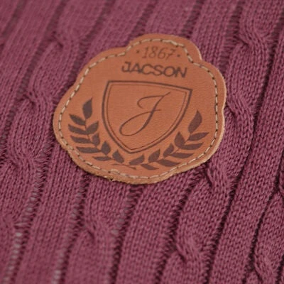 En klassisk kabelstrikket genser fra Jacson som prydes av brune lapper i syntetisk semsket skinn på albuene.Materiale:Genser: 100% bomull.Lapper: 100% polyester.Vaskeanvisning: maskinvask 40°C.