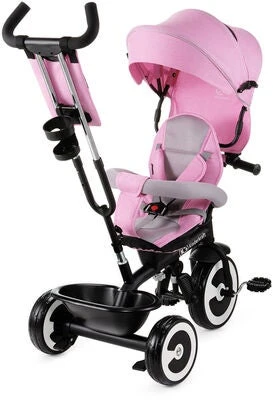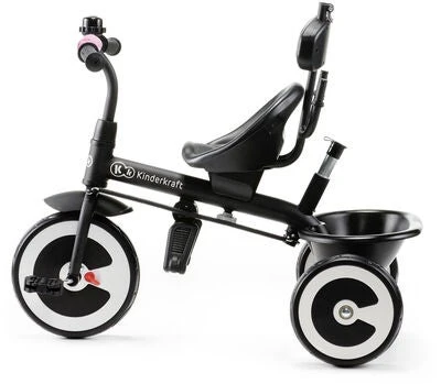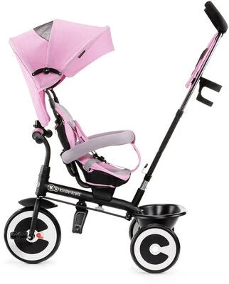 En flerfunksjonell trehjulssykkel fra Kinderkraft, med et sete som kan justeres både framovervendt og bakovervendt. Trehjulssykkelen har sikkehetsbelte, en innleggbar fotstøtte, og pedaler som kan låses. Den har også et foreldrehåndtak som er justerbart, og og som kan tas av elt. Også barnets armstøtte kan tas av. Setet er justerbart i to innstillinger, enten nærmere eller lenger vekk fra pedalene. Trehjulssykkelens brettbare tak tilbyr sol- og regnbeskyttelse, er justerbart og avtakbart. Det inngår også en koppholder, og en praktisk oppbvaringsveske til småasker, som kan henges på foreldrehåndtaket. Trehjulssykkelen har dessuten en ringeklokk og en romslig varekurv. Anbefalt alder: 9 mnd +.