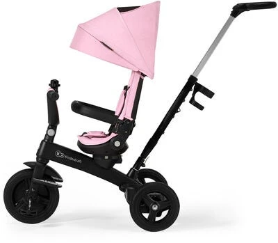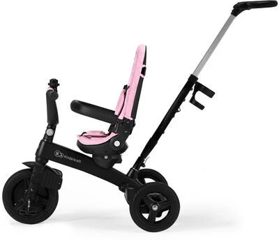 Twipper, en multifunksjonell trehjulssykkel fra Kinderkraft. Denne 5-i-1 trehjulssykkelen er utstyrt med sikkerhetsbelte, sammenbrettbar fotstøtte og låsbare pedaler. Foreldrehåndtaket kan justeres eller fjernes helt, barnets armstøtte kan også fjernes. Trehjulssykkelens tak beskytter mot regn og sol, og det er både justerbart og avtakbart.Den høye ryggstøtten kan enkelt justeres til halvt liggende posisjon, slik at barnet kan ta en høneblund når dere er ute på tur. Trehjulssykkelen er enkel å legge sammen for lettvinn oppbevaring og transportering. Anbefalt alder: fra 9 måneder.
