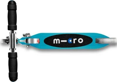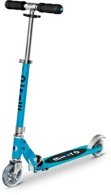 Kul, morsom, blå Sprite sparkesykkel fra Micro med en lett ramme i aluminium. Den er sammenleggbar og sikker. Den har to lettrullende hjul i PU og et justerbart styre, for tilpasning til barn i ulike aldre. – Mål: H 95 x B 10 x L 35 cm – CE-merket – Maksimal vekt: 100.0 kg – Anbefalt alder: fra 5 til 12 år