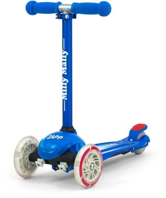 Scooteren Zapp fra Milly Mally, en stabil sparkesykkel for de minste barna. Den er ultralett og stabil takket være de tre hjulene. Ståplaten er dekket med et sklisikkert materiale for ekstra godt grep, håndtakene er dekket med gummi. Med denne scooteren kan barnet utvikle motoriske ferdigheter, benstyrke, koordinasjon og balanse.- Justerbar i høyden, mellom 61-66 cm.- Stille gummihjul.- Trehjuls-konstruksjon.- Sammenleggbar, tar lite plass.- Bakhjul med bremser.