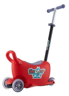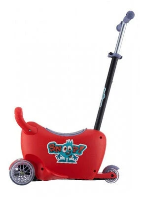 Snoop! er en smart gåbil og sparkesykkel i ett. Kjøretøyet kan styres av en voksen med det praktiske foreldrehåndtaket, som også kan tas helt av, slik at barnet kan bruke Snoop! som en gåbil. Du kan også forvandle Snoop! til en heftig sparkesykkel, ved å fjerne setet på gåbilen og montere tilbake foreldrestangen, som da blir styret på sparkesykkelen. – Lett konstruksjon- Aluminiumstyre, som også fungerer som foreldrestang- komfortabelt sete med oppbevaringsrom under luken- Tre stillegående gummihjul- Komfortable og sklisikre håndtak- Tre høydeinnstillinger på styret- Slitesterkt, bredt og sklisikkert ståbrett- Fotbrems på bakhjuletAnbefalt alder: Fra 18 måneder.