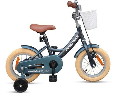 Fargerik, grå Retro City sykkel av høy kvalitet fra Pinepeak med avtagbare støttehjul. Den har en håndbrems på forhjulet og en sykkelklokke foran. Sykkelen har en synlig refleks, en heldekkende kjedebeskyttelse, et justerbart sete og ett gir. – Ett gir– 12 tommer. – Maksimal vekt: 20 kg. – Mål: H 69 x B 46 x L 90 cm. – Anbefalt alder: fra 2 til 4 år. – 80 % metall, 10 % gummi, 10 % plast.