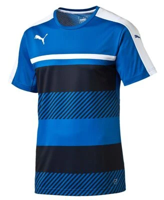 En fin og god treningstrøye fra klassikeren Puma. Denne trøya leder varme vekk fra kroppen og holder deg frisk og tørr på treningen. – Stilig klassisk stripemønster, hvite striper over skuldrene. – Nettingtøy på øvre del av ryggen. – Regular fit passform. Materiale: 100 % polyester.