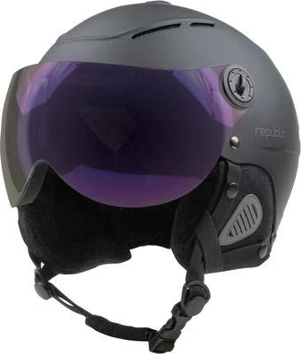 En heftig skihjelm fra Republic, med innebygget visir. Hjelmen er laget av solid ABS-plast, med justerbar ventilasjon og uttakbar innside i fleece. Den har avtakbare ørelapper og er justerbar i nakken, for best mulige passform.
