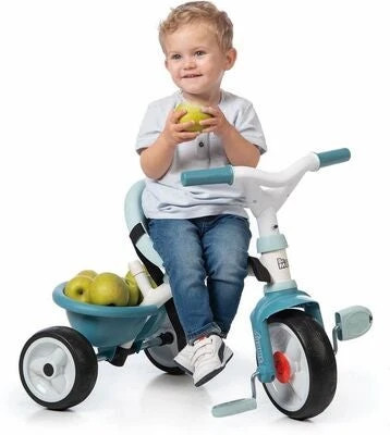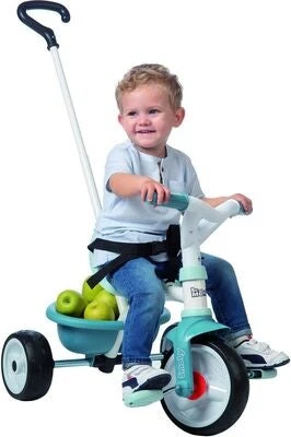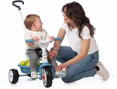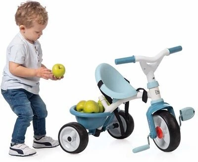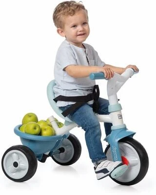 Be Move Comfort fra Smoby er en kul trehjuling for de minste. Trehjulingen består av en stødig metallramme med et opphøyd sete som bevarer sin stabilitet takket være de brede hjulene. Setets form er designet for å støtte barnets rygg og kan justeres i to nivåer. Trehjulingen har sikkerhetsbelte, mulighet for å låse styret, et vippbart bagasjebrett og fotstøtte. Pedalene følger ikke automatisk etter når forhjulet snurrer, og er utformet slik at barnets føtter ikke glir på de. Foreldrehåndtaket er justerbart i tre høydenivåer og kan tas av. En trehjuling som både du og barnet ditt kommer til å elske! Anbefalt alder: Fra 15 måneder – 3 år.