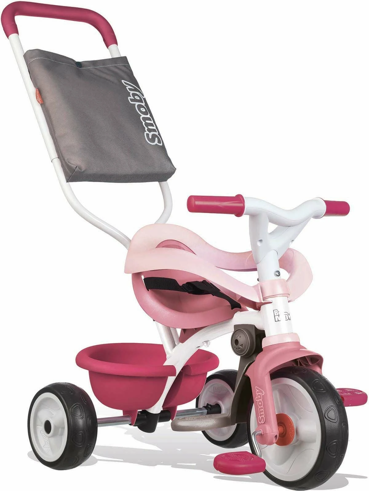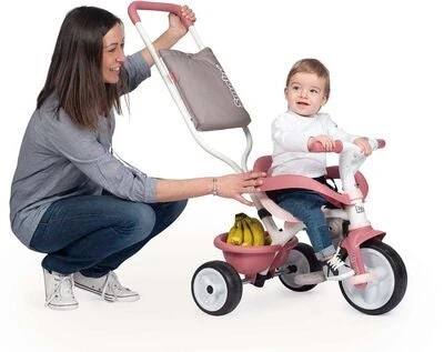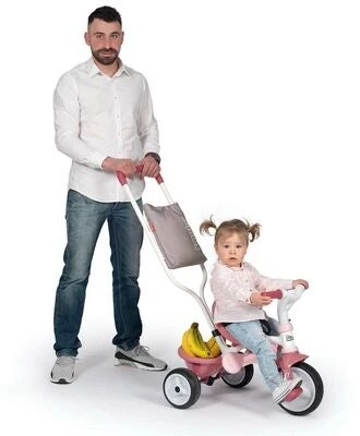 Be Move Comfort fra Smoby er en kul trehjuling for de minste. Trehjulingen består av en stødig metallramme med et opphøyd sete som bevarer sin stabilitet takket være de brede hjulene. Setets form er designet for å støtte barnets rygg og kan justeres i to nivåer. Trehjulingen har sikkerhetsbelte, mulighet for å låse styret, et vippbart bagasjebrett, og fotstøtte. Pedalene følger ikke automatisk etter når forhjulet snurrer, og er utformet slik at barnets føtter ikke glir på de. Foreldrehåndtaket er justerbart i tre høydenivåer og kan tas av. En trehjuling som både du og barnet ditt kommer til å elske! Anbefalt alder: Fra 10 måneder – 3 år.