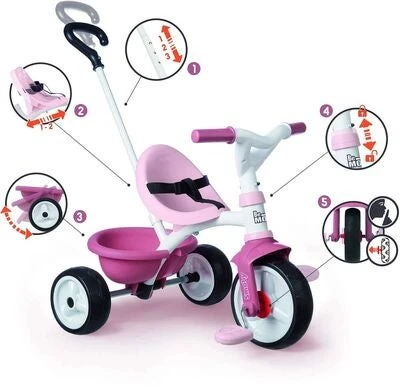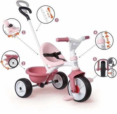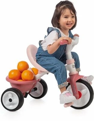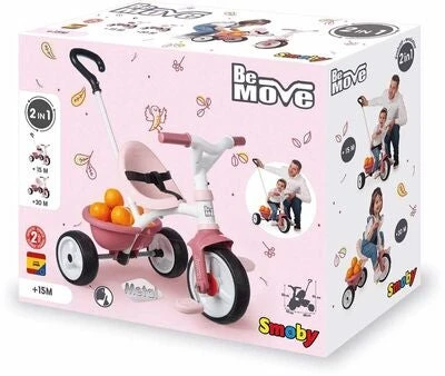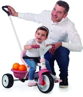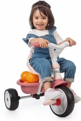 Be Move Comfort fra Smoby er en kul trehjuling for de minste. Trehjulingen består av en stødig metallramme med et opphøyd sete som bevarer sin stabilitet takket være de brede hjulene. Setets form er designet for å støtte barnets rygg og kan justeres i to nivåer. Trehjulingen har sikkerhetsbelte, mulighet for å låse styret, et vippbart bagasjebrett og fotstøtte. Pedalene følger ikke automatisk etter når forhjulet snurrer, og er utformet slik at barnets føtter ikke glir på de. Foreldrehåndtaket er justerbart i tre høydenivåer og kan tas av. En trehjuling som både du og barnet ditt kommer til å elske! Anbefalt alder: Fra 15 måneder – 3 år.
