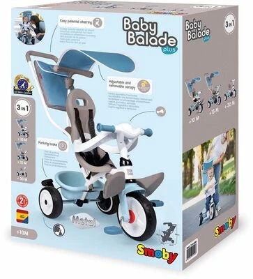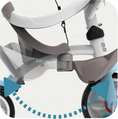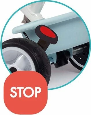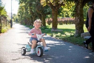 En tøff trehjulssykkel med sikkerhetsbelte og sterke, stillerullende gummidekk. Denne heftige trehjulssykkelen har en tute og et lite flak på baksiden, som barnet ditt kan fylle med leker eller noe annet morsomt.Setet kan justeres i to forskjellige posisjoner. Det er utstyrt med en komfortabel ryggstøtte, solbeskyttelse og en sikkerhetsbøyle som gir god plass til barnets ben. Trehjulssykkelen er også utstyrt med et håndtak, slik at en voksen kan holde og gi litt ekstra fart når beina er slitne.Forhjulet er av frihjulstypen, noe som betyr at pedalene slutter å spinne når barnet ditt slutter å tråkke, selv om sykkelen fortsetter å bevege seg. Dette er en perfekt sykkel som barnet kan vokse i. En kjempefin uteleke for solfylte sommerdager!- Integrert kontrollsystem som lar en voksen kontrollere.- Fotstøtte.- Håndtak med praktisk oppbevaringspose.- Sikkerhetsbelte.- Solbeskyttelse.Anbefalt alder: Fra 10 måneder.
