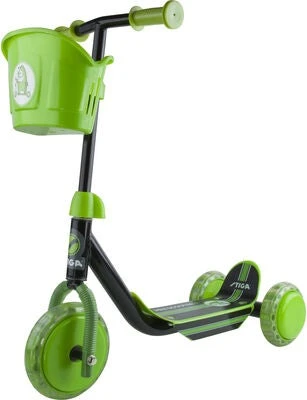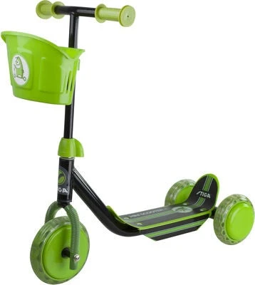 Stiga Sparkesykkel Trehjuling, Grønn er en kul sparkesykkel med kurv på styret fra STIGA. De tre hjulene gjør det lettere for de mindre barna å holde balansen. Materiale: Plasthjul, stålrammeMål: H 60cmMaksbelastning: 20 kg.