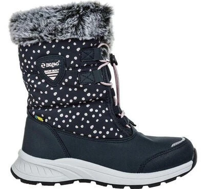 Wesend er et par vintersko i høyere modell, fra ZigZag. Skoene har en vanntett membran og et mykt og varmende fôr, som holder barnets føtter varme og tørre gjennom hele dagen. Det høye skaftet og de elastiske skolissene gir skoene en behagelig passform, og gjør det lett å ta dem av og på.